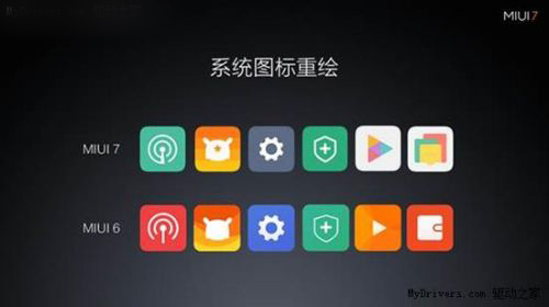 对比MIUI6和MIUI 7的默认UI界面,一眼望去看似没什么大的区别,其实并非如此。仔细观察的朋友会发现,MIUI 7不仅对默认UI界面进行了重新调色,而且还对图标进行了调整与重绘。