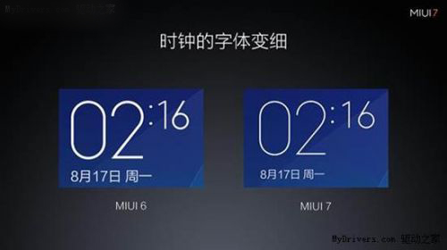 MIUI 7还对系统时钟的字体进行了重新设计,比MIUI6要明显清秀很多。