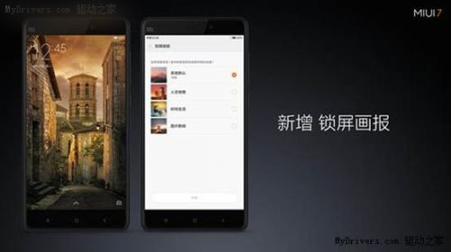 MIUI 7支持全新的锁屏画报,自带17张人文地理、时尚生活、图片新闻3类默认画报可供轮播。使用方法:设置→壁纸→选择新的壁纸→锁屏画报。应用后,每天的凌晨将会自动更换,新的一天也会有新的壁纸来临,是不是很酷?