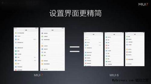 MIUI 7设置界面进行了全新的改版,分类更加清晰。原先MIUI6的设置界面翻起来足有3屏多,全新改版的MIUI 7设置界面只有2屏,看起来更加精简。