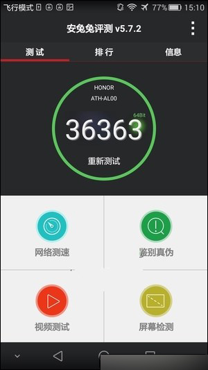 至于荣耀7i跑分怎么样,我们通过安兔兔V5.7.2跑分软件测试后,我们可以看出荣耀7i安兔兔跑分为36363分,超过了3.6万分。尽管和其他的一下中端手机相比没有占到优势,但就其自身而言算是不错的了。