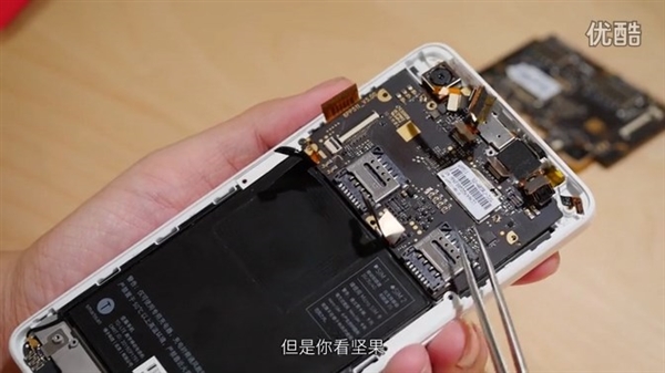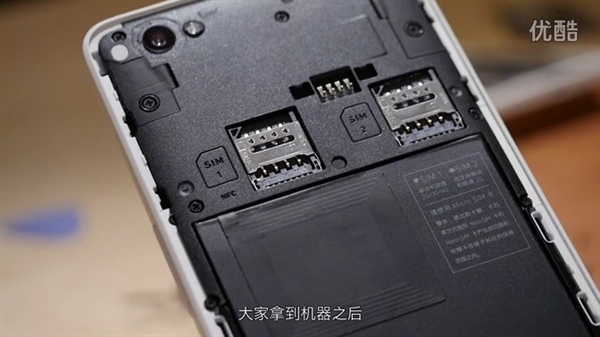 - 内部背面和一般千元机差不多,但双SIM卡槽集成在内部。