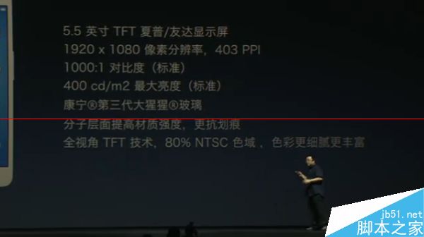 屏幕:分辨率为1920*1080的5.5英寸TFT电容屏,像素密度403ppi