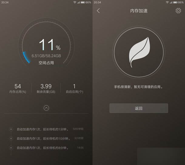 此外,ZUK重新设计了系统的内存优化机制,研发了一个动态内存优化引擎,能够识别内存中不重要的后台程序,及时清理掉,从而释放掉内存,既加快了系统流畅度,又减少后台耗电,延长待机。