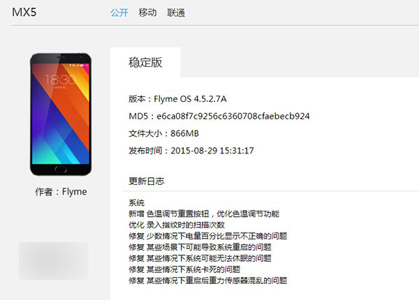 Flyme 4.5.2.7A For MX5稳定版(866MB):点此下载