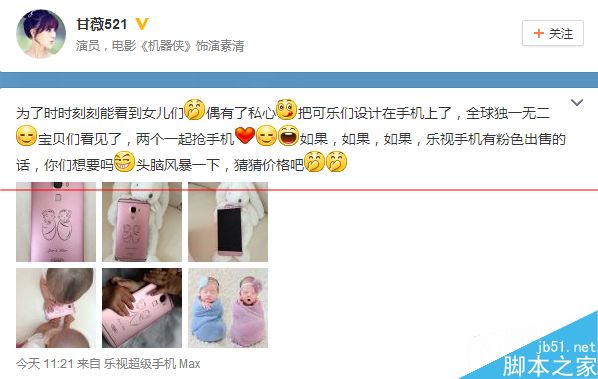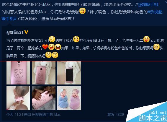 微博网友@甘薇521 曝光的粉色版乐Max真机并得到乐视官微转发,看来乐视将推出粉色“女神版”乐Max是板上钉钉的事实了。