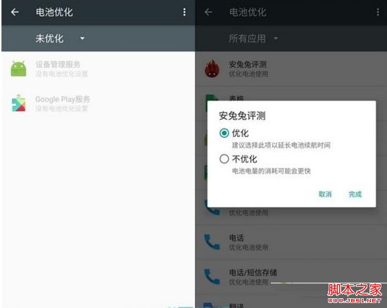 Android 6.0引入新的Doze模式,可以大幅度提升续航(号称可以省电30%),它的原理是在应用长时间没有使用的时候,自动休眠。在设置菜单中,也可以设置单独针对每一个应用进行续航的优化。