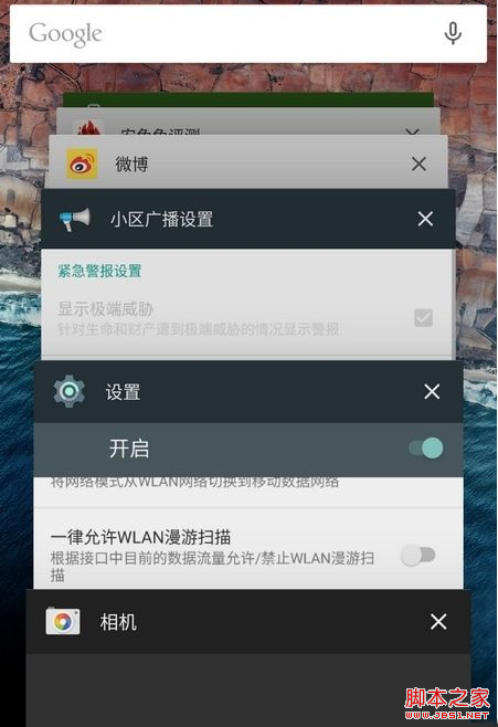 多任务管理依然采用卡片式,集成搜索栏,依然只可以单独关闭应用,不能一键清空(这点执着和iOS倒是挺一致的)。