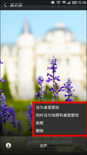 7、或者点击旁边的小按钮,在弹出来的列表里,进行相关的设置,比如”设为桌面壁纸“、”同时设为锁屏和桌面壁纸“等等;