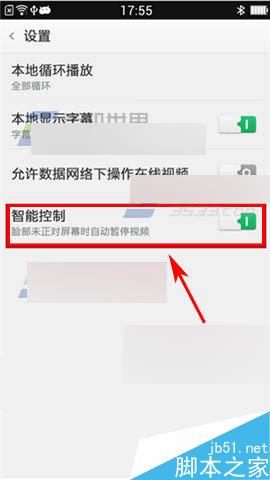 点击进入视频播放,在我的视频一栏点击右上角【设置】按钮进入,开启【智能控制】右边滑块,打开之后会对人脸进行识别,当脸部未正对屏幕时会自动暂停视频。(如下图)