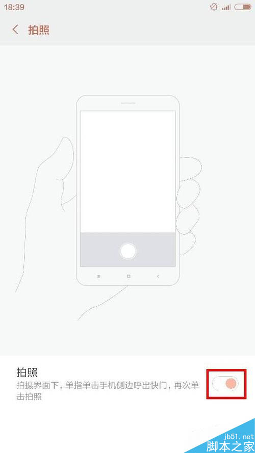 3.边缘触控有两个功能,一个可以全局返回,另外一个则是拍照,这里以拍照为例,选择——拍照,进入