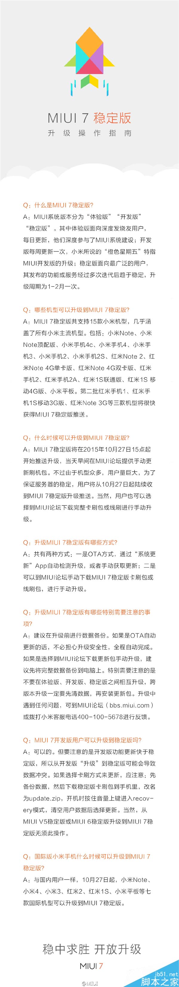 以下为官方提供的MIUI 7稳定版升级指南: