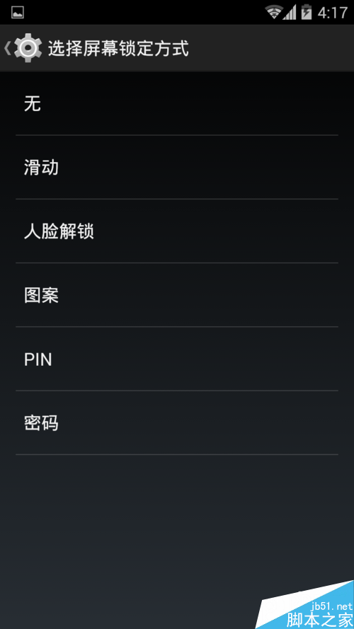4.进入锁屏安全设置后,可先选择锁屏类型:滑动解锁、PIN码、图案(即手势密码)等。