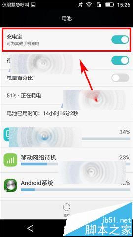 点击设置进入,在全部设置一栏点击【电池】,然后开启【充电宝】右边滑块,将两部手机连接数据线即可。(注:数据线的两端均为标准的micro USB接口,可以在某宝购买)(如下图)