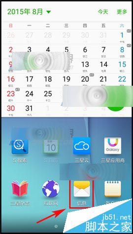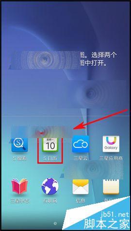 1)首先我们先长按手机左下角的【最近应用程序】键,阅读屏幕文字说明后,选择一个需要以多窗口分屏视图打开的应用程序,这里以点击【S日历】为例,打开后再选择一个程序,这里以【信息】为例。(如下图)