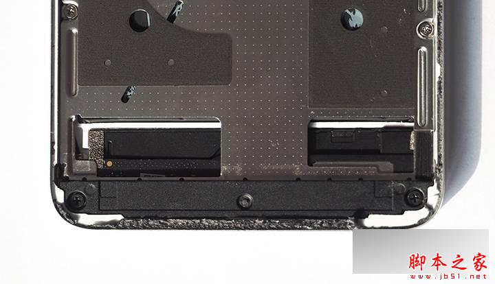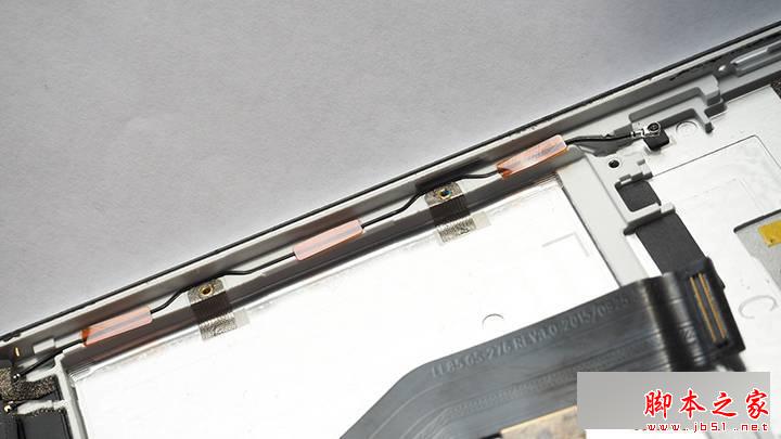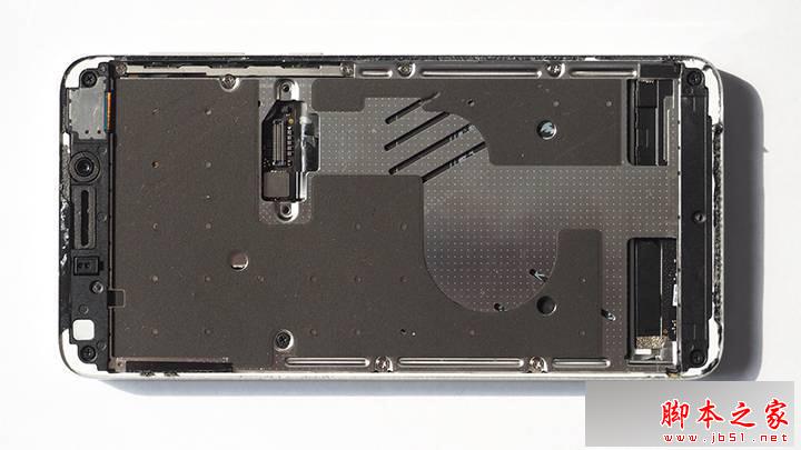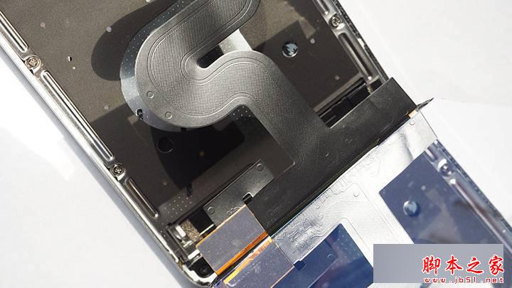 拿掉屏幕后可以看到FPC使用不锈钢组件固定,主板/电池和屏幕之间有不锈钢隔离板,接地、散热均和其连接。