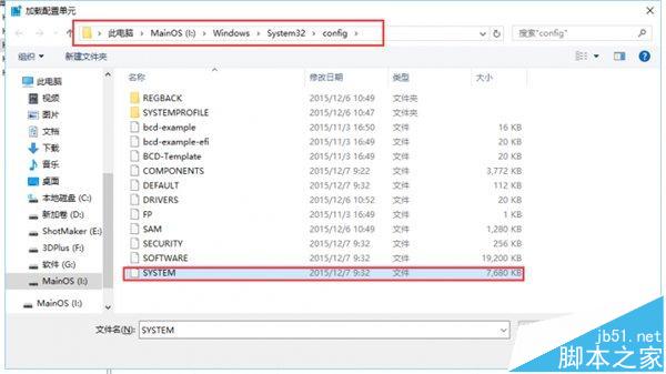 4.在弹出窗口中选择路径MainOS/windows/system32/config/system