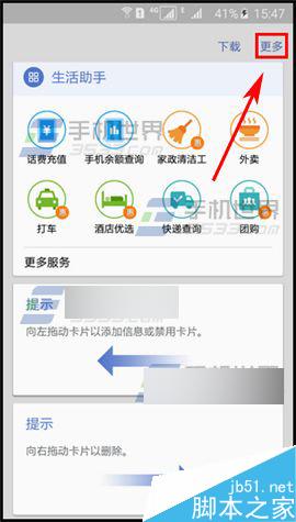 1)点击【S助手】进入,然后点击右上角【更多】按钮。(如下图)