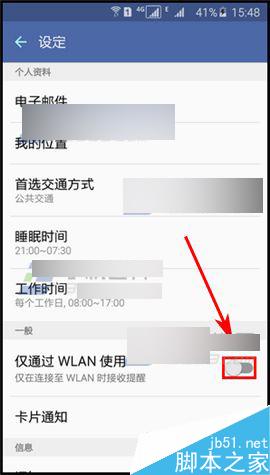 2)接着点击【设定】,根据自己的个人情况及习惯,设置电子邮件、我的位置、首选交通方式、睡眠时间及工作时间,设置后,将【仅通过WLAN使用】开启,以节省移动数据流量。(如下图)