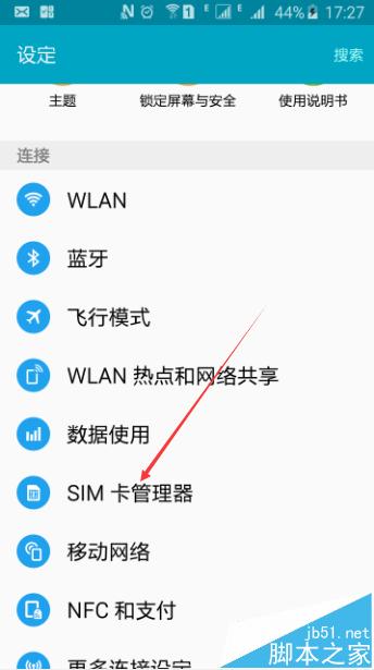 3、在“设定”中上翻找到并点击“SIM卡管理器”;
