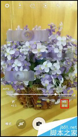 4)接着我们再点击【WB】白平衡,然后选择WB白平衡的模式,这里以【荧光】为例,对专业模式设置完成后,轻敲“空白处”以关闭设置,相信现在网友大概也都了解了,也就可以进行拍照了。(如下图)