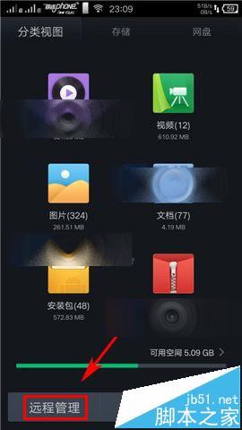 1)在待机界面点击【文件管理】,进入后在分类视图一栏,点击左下方【远程管理】按钮。(如下图)