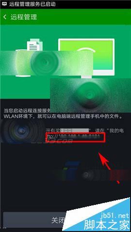 2)然后我们点击【启动服务】,根据手机端页面内的提示在电脑端【我的电脑】处输入相应的【地址】。(如下图)