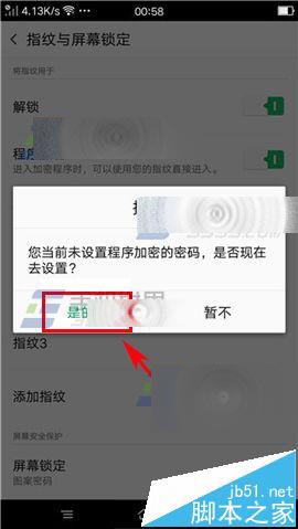 4)设置完一种解锁方式并输入后点击【确定】,再接着点击【加密程序】。(如下图)