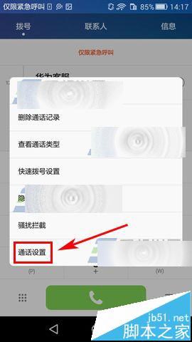 1)首先我们先打开【电话】,然后来到拨号页面点击右下角的【三】,弹出窗口后我们再点击【通话设置】。(如下图)