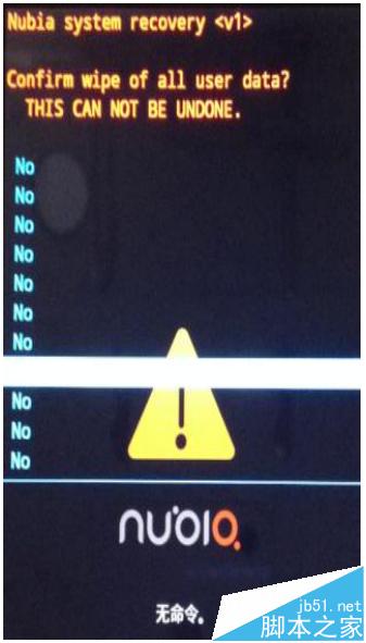 3、手机会进入如下界面,此时同样可以使用音量加、减键来移动光标,将光标移到 Yes--delete all user data 行,然后按电源键确定;