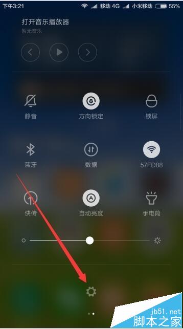 2、我们向下拉动手机屏幕,找到设置按钮,或是滑动手机屏幕,打到设置图标