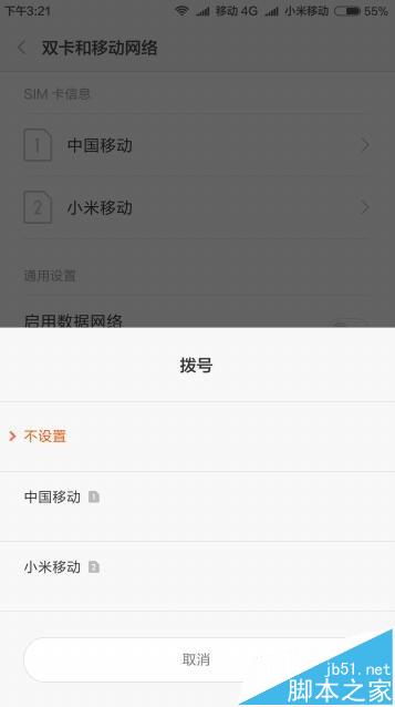 5、在弹出的菜单中选择一个你经常使用的主卡,这样以后拨打电话就会直接使用该卡拨号,不再弹出选择窗口了,方便了很多。