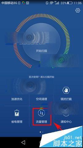 1)首先我们先打开【手机管家】,然后点击【流量管理】。(如下图)