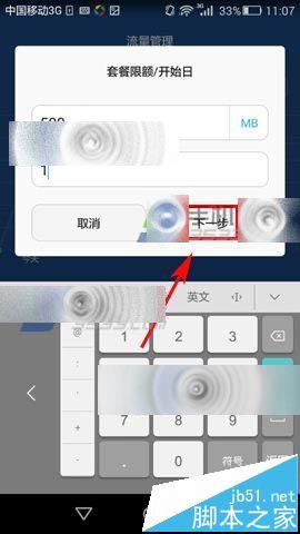 2)打开后再点击【套餐设置】,然后输入你的套餐限额和开始日点击【下一步】即可。(如下图)