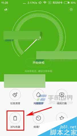 1)首先我们先打开【安全中心】,然后找到【电量】。(如下图)
