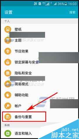 1)首先我们先打开【设置】,然后找到【备份与重置】。(如下图)