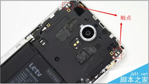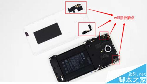 3、撬开后盖以后,如图所示,可以看到乐视1手机的wifi接收触点,乐视1手机wifi信号弱的原因主要是这里的触点接触不良所致;