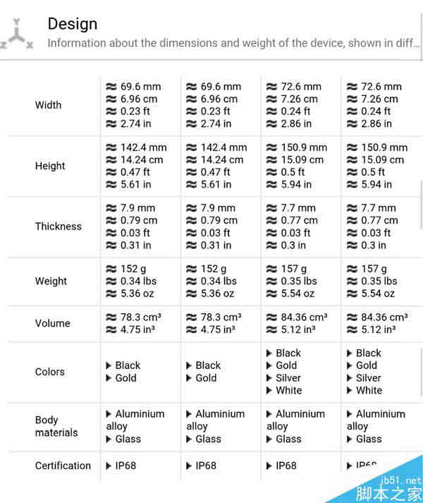 - 尺寸:S7 142.4×69.6×7.9毫米;S7 Edge 150.9×72.6×7.7毫米
