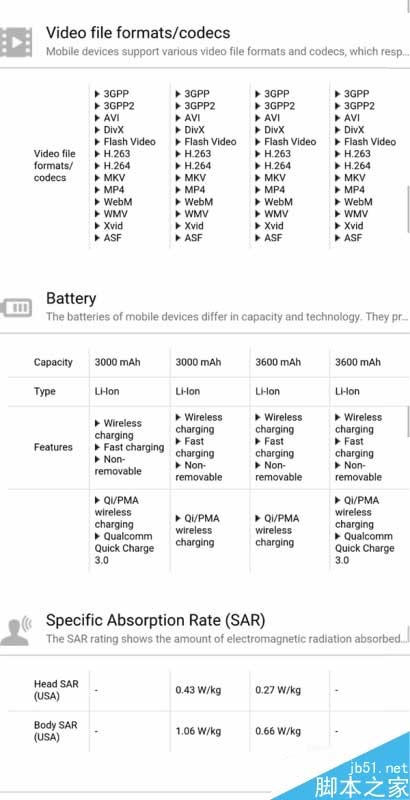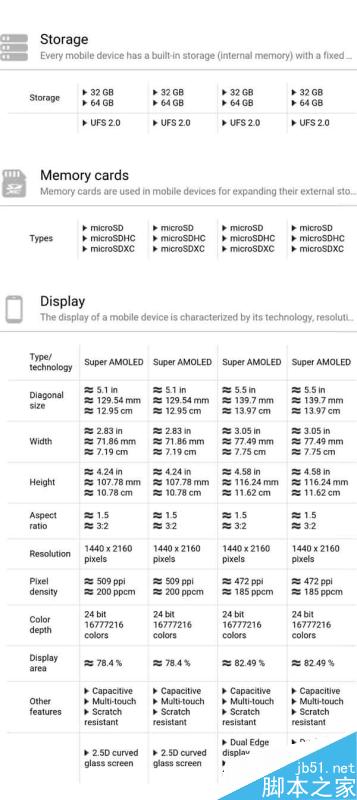 - 电池:S7 3000mAh(11.55Whr);S7 Edge 3600mAh(13.86Whr);均支持Qi/PMA无线充电、Quick Charge 3.0快速充电