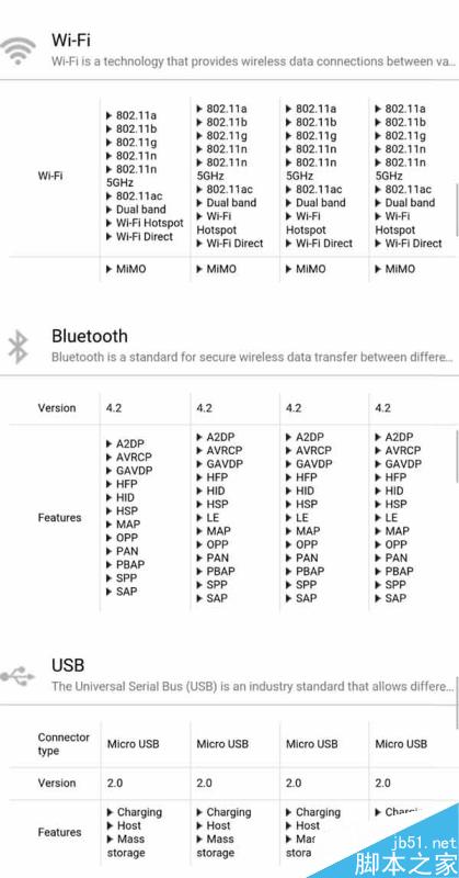 - 网络:802.11ac 2x2 MIMO、蓝牙4.2、USB 2.0(microUSB)、NFC