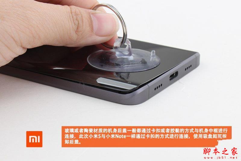 小米5尊享版拆机从后壳开始,不过需要借助吸盘,如图。
