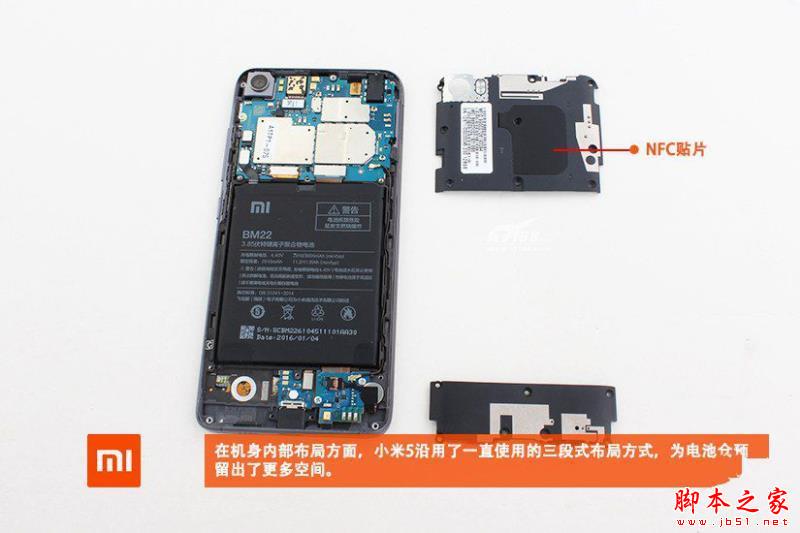 在机身内部布局方面,小米5沿用了一致使用的三段式布局方式,为电池仓留出了更多空间。