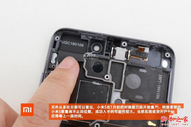 从小米5机身内部可以看到一些生产日期消息,从中可以看出,这款手机量产已经有段时间了,说明小米5备货量应该很大,初期也比较容易购买。