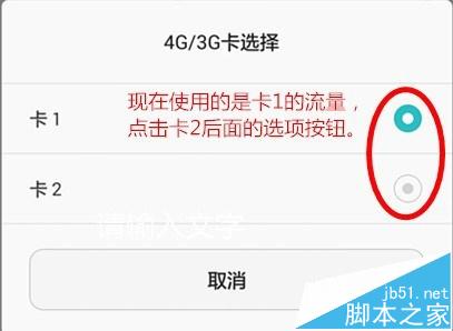 5、在双卡设置界面点击【4G/3G卡选择】,进入双卡切换页面,目前使用的是卡1,所以卡1后面的选项按钮是呈蓝色的,点击卡2后面的灰色按钮,进行切换。