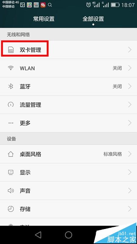 3、在无线和网络下面找到【双卡管理】,点击进入;