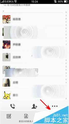 1)首先我们先打开【电话】,然后来到联系人列表里点击右下角的【三点】,接着再点击【设置】。(如下图)