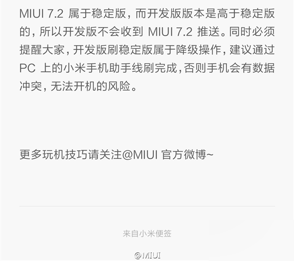 也可以在小米官网下载线刷包/卡刷包,手动更新,地址为:http://www.miui.com/zt/miui7.2/download.html