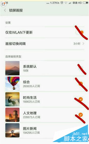 方法一:关闭你不喜欢的画报。首先用户需要先进入设置-壁纸-选择新的壁纸-锁屏画报,然后在锁屏画报的界面全部不打勾