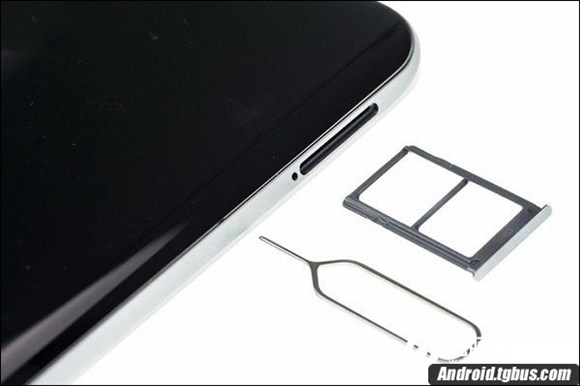 第一步:首先使用卡针取出机身侧面的SIM卡槽,如图。