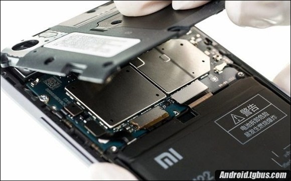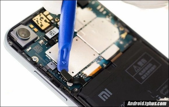 将螺丝拆卸下来后,就可以轻松的将这一保护小块取下来,之后就可以看到小米5内部的主板了,如图。